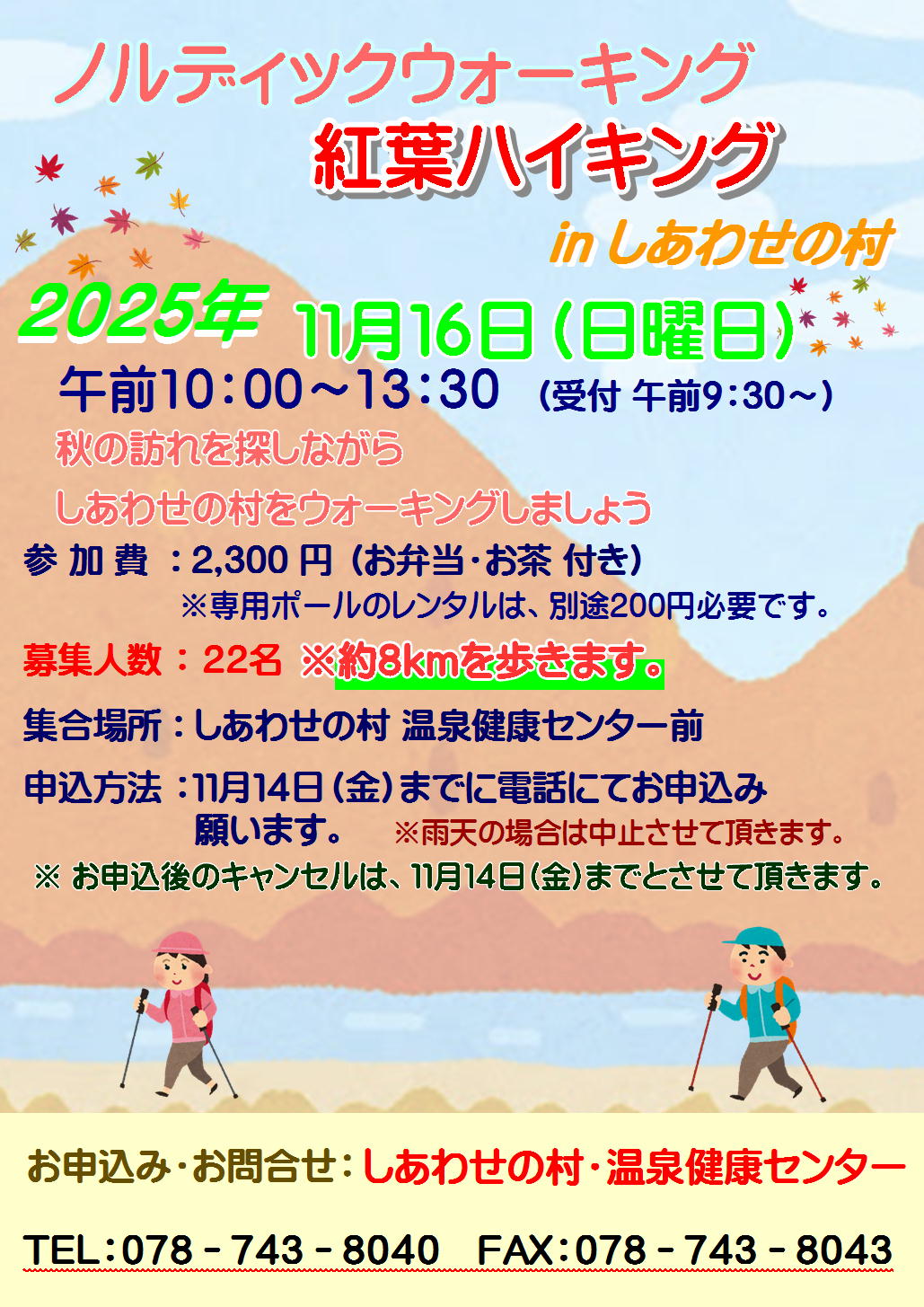 ノルディックウォーキング紅葉ハイキングinしあわせの村